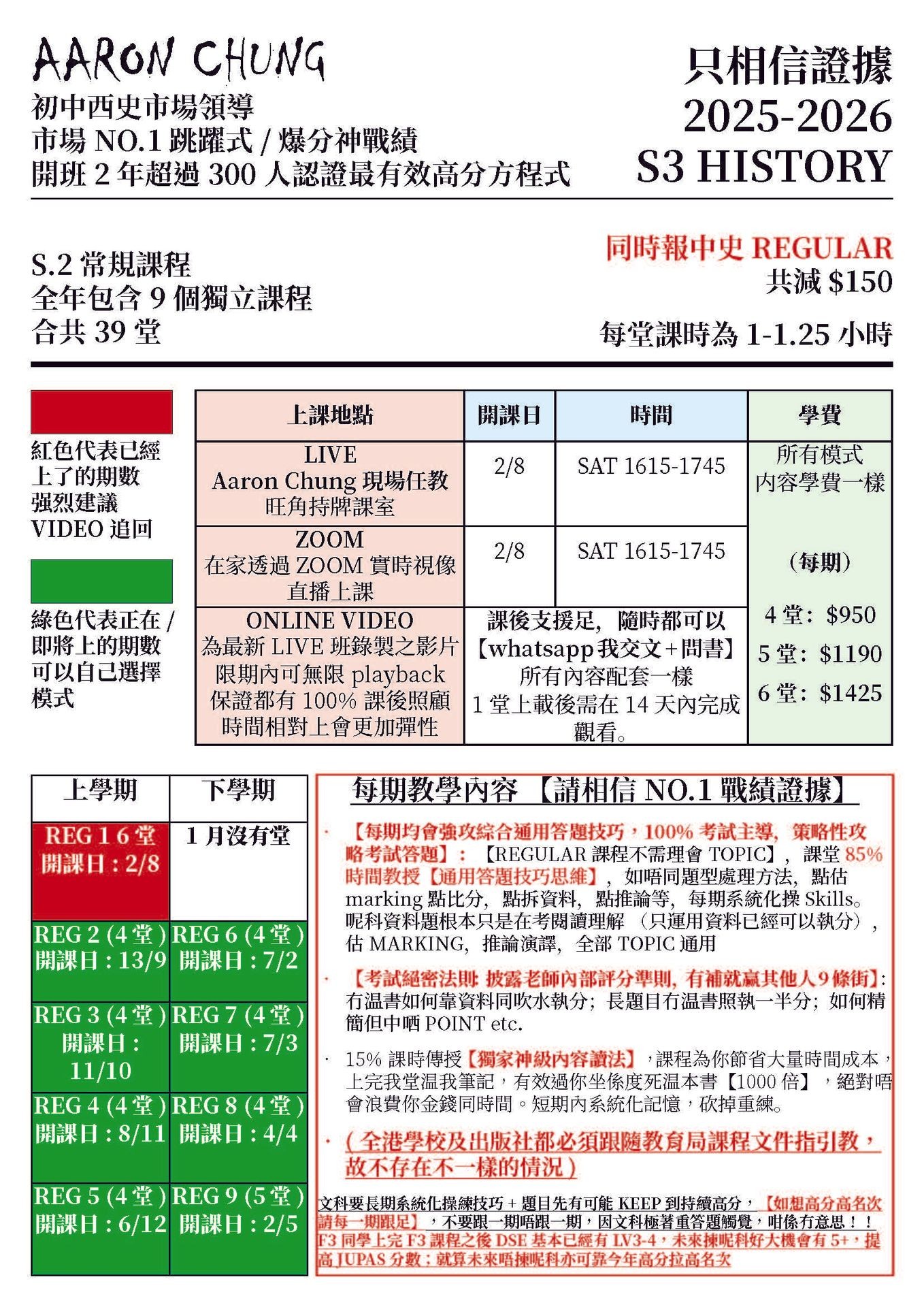 【REGULAR 課程不需理會TOPIC】,以【通用技巧思維做主線】,如唔同題型處理方法,點估marking 點比分,點拆資料,點推論等,每期系統操練思維技巧,想高分就跟足我每期長期浸淫,冇捷徑